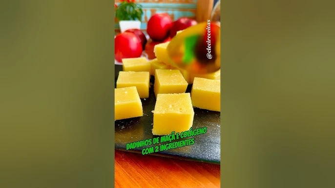 Pique as maçãs e as coloque numa panela juntamente com água até cozinhá-las. Depois triturá-las com um mixer e adicione a gelatina. A receita dobrará de tamanho. Em um refratário previamente untado de preferência com óleo de coco, despeje a mistura e leve a geladeira por 4 horas. Já firme corte em cubinhos. Esta receita é rica em colágeno que ajuda nas articulações, previne a sarcopenia e deixa a pele mais firme. Dura na geladeira por 5 dias. Aposte!