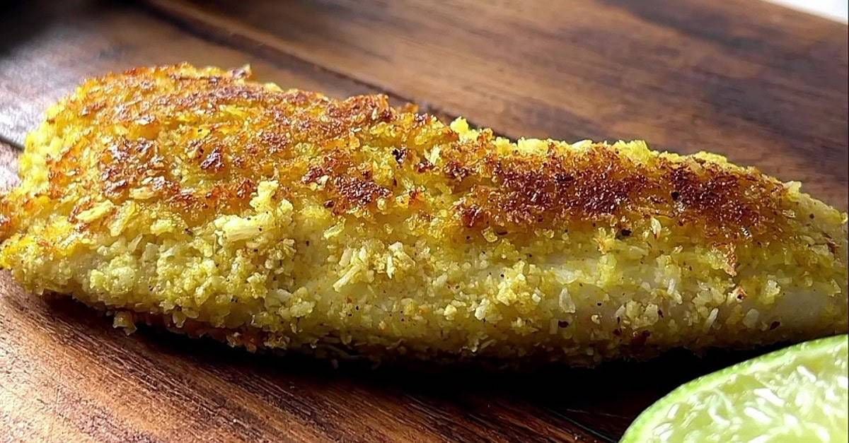 TILÁPIA COM CROSTA DE CURRY E COCO