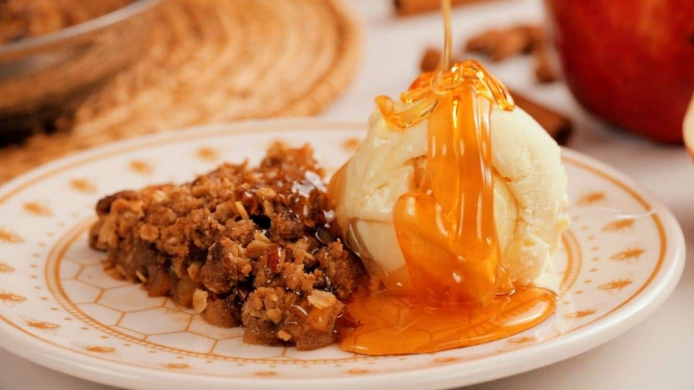Leve ao forno médio por 40 a 45 minutos, até dourar a cobertura e assar as maçãs;
