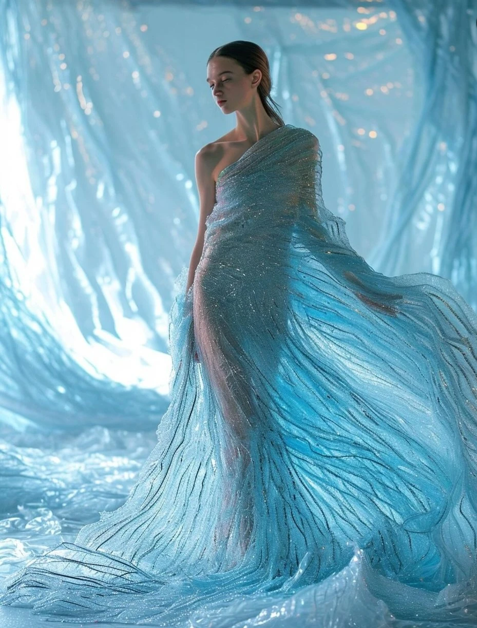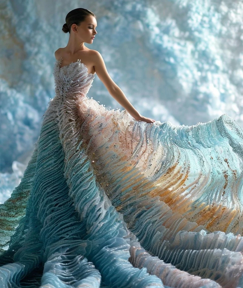 Tecidos que fazem onda e enfeitam o corpo feminino quase etéreo...Abaixo, Diva sobre formas e desdobramentos...