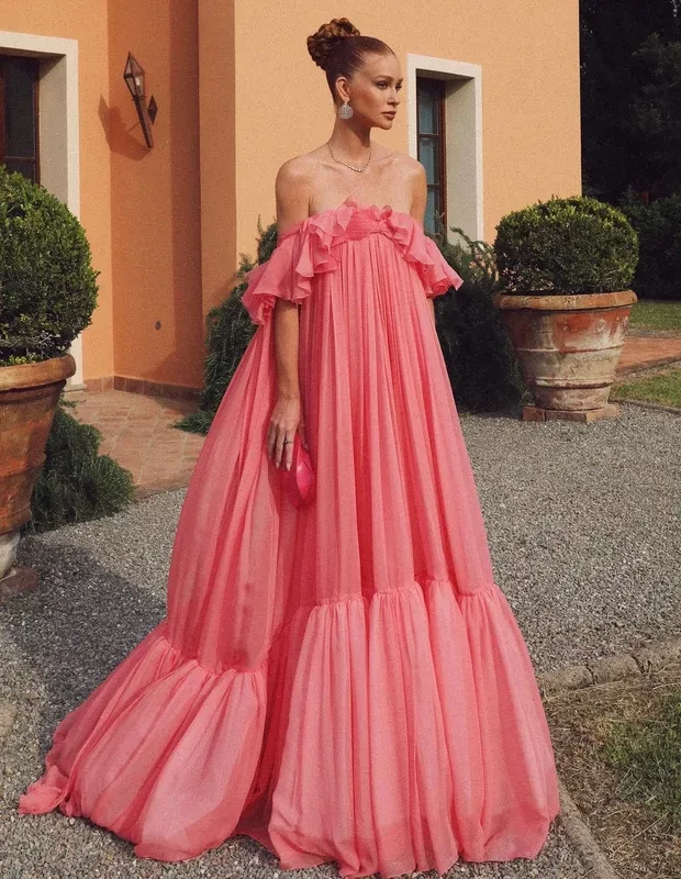Vestido Giambatistti Valli e abaixo look monocromático em vermelho.