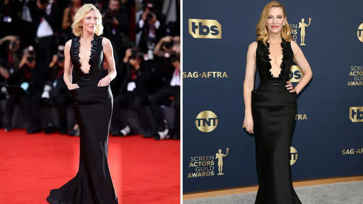 Cate Blanchett faz repeteco de um belo vestido preto Armani Privé usado em 2019 em outra premiação.
