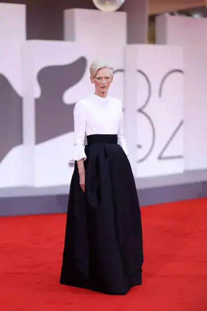 Tilda Swinton by Chanel e abaixo Emily Blunt by Tamara Ralph